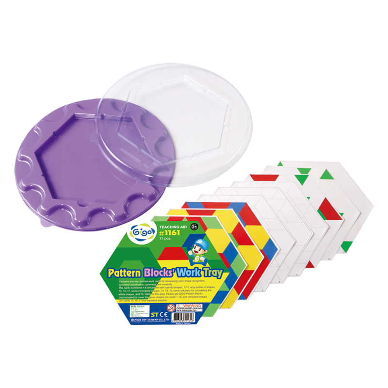 Η βάση με τις κάρτες για Πάτερν Μπλοκ εξοικειώνει τα παιδιά με τη χρήση των γεωμετρικών σχημάτων μέσα από την συμπλήρωση του εξαγώνου με το συνδυασμό διαφόρων σχημάτων, την συμπλήρωση των άχρωμων σχημάτων της καρτέλας με τα αντίστοιχα πλαστικά σχήματα Πάτερν Μπλοκ και τη συμπλήρωση των κενών με πλαστικά σχήματα. Το προϊόν αποτελείται από μια εξαγωνική βάση με πλαστικό καπάκι και 9 καρτέλες διπλής όψεως και μια λευκή για ελεύθερο παιχνίδι.