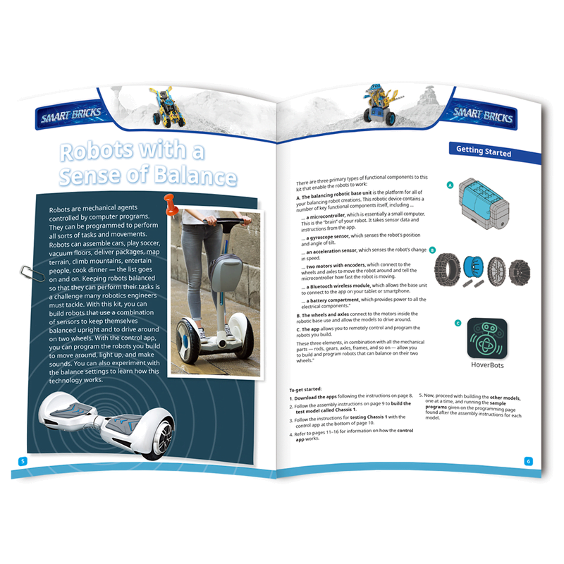 Μάθετε για τα ρομπότ εξισορρόπησης στον πραγματικό κόσμο, όπως το Segways και τα hoverboards. Αφού μάθετε πώς λειτουργεί η τεχνολογία, μπορείτε να σχεδιάσετε, να δημιουργήσετε και να προγραμματίσετε τα δικά σας ρομπότ χρησιμοποιώντας τα 227 δομικά κομμάτια του σετ. Περιέχεται ένα πλήρες, 64-σελιδο εικονογραφημένο εγχειρίδιο βήμα-προς-βήμα που βοηθά τα παιδιά να φτιάξουν όλα τα μοντέλα και τους διδάσκει για τη ρομποτική στον πραγματικό κόσμο.